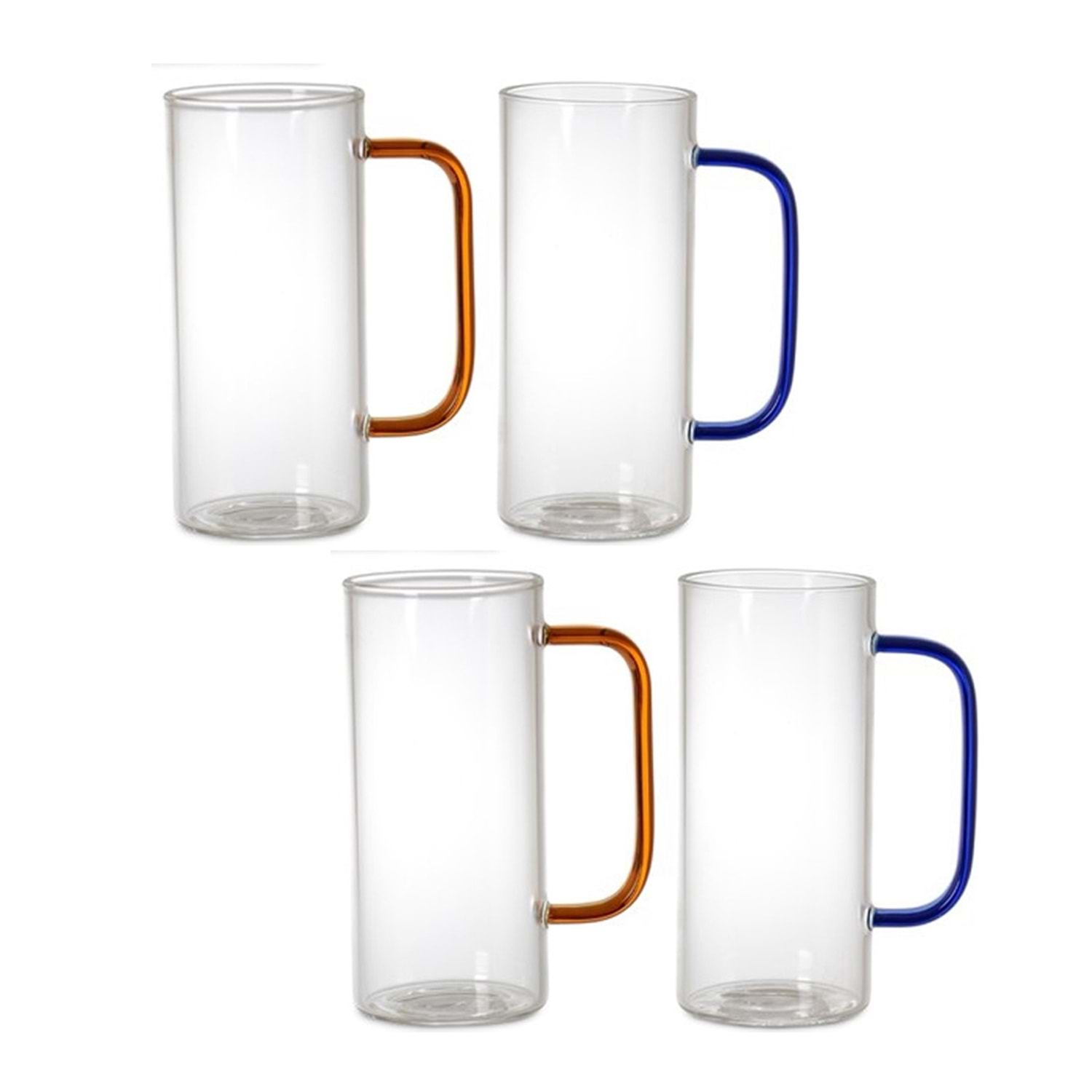 DELİ GALSSWARE 4LÜ CAM KUPA BARDAK 380ML Deli Glassware Borosilikat Isıya Dayanıklı Termisil Cam Kupa 4'lü 380ml Hacim: 380ml Ürün Boyutları Çapı: Ø6cm Boyu: H14cm Renkleri ve duruşuya her yudumundan zevk alacağınız bir tasarım 4 adet kupa sapları farklı renklerdedir.